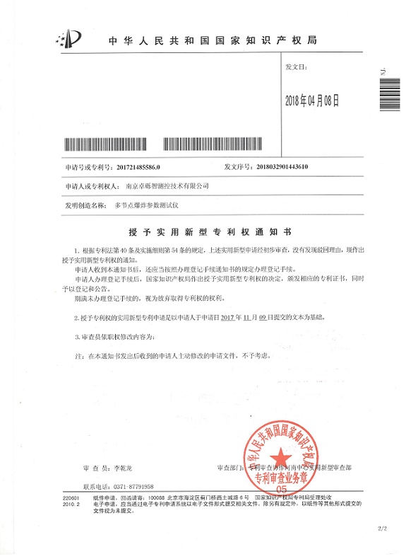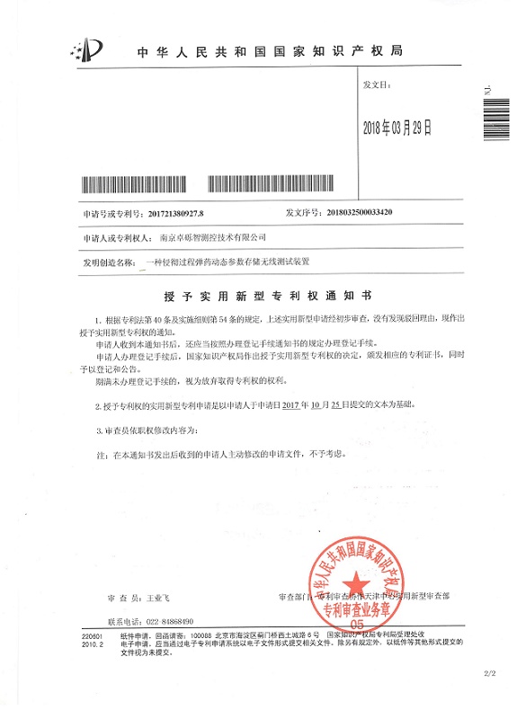 近日,公司申請的兩個實用新型專利獲得國家知識產權局授權