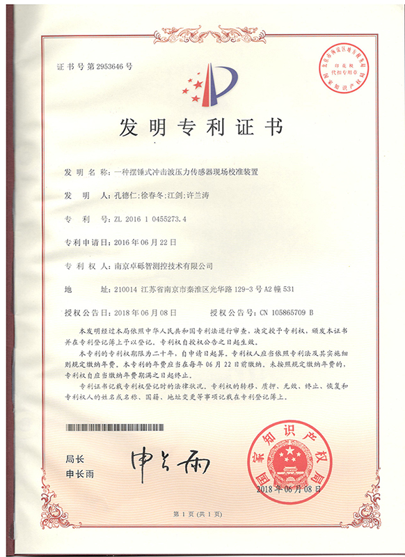 一種擺錘式沖擊波壓力傳感器現場校準裝置